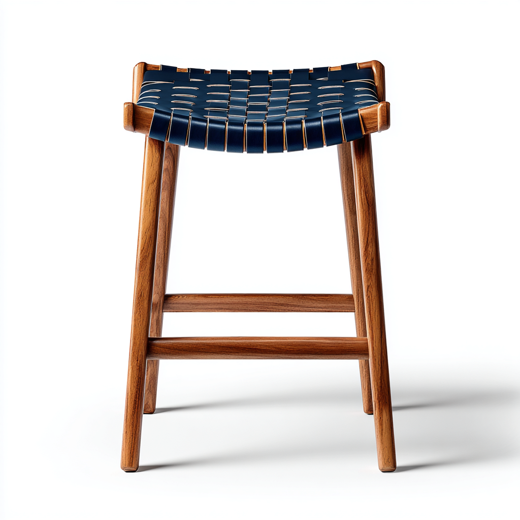 Sgabello da bar ' legno e seduta intrecciata 36x34x74 cm ' blu - marrone ' per sala da pranzo ' design moderno