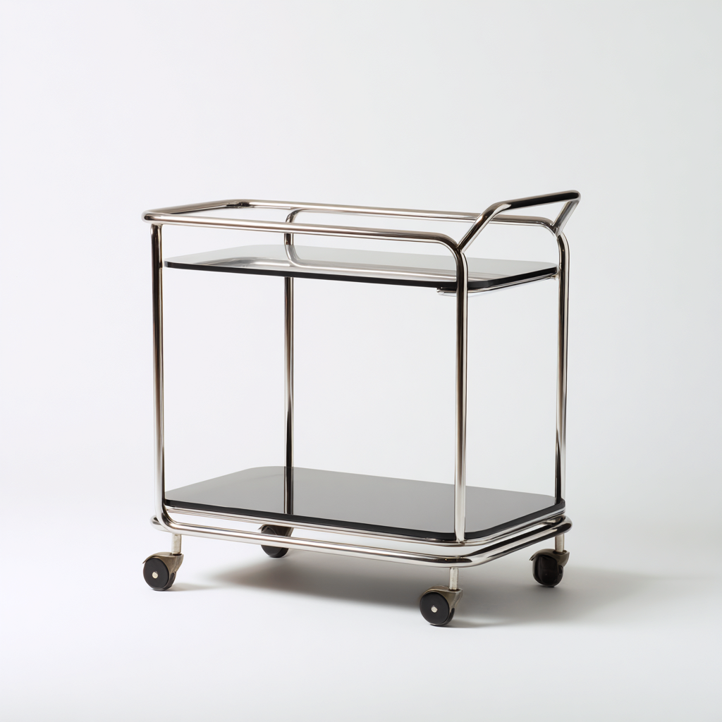 Questo carrello da cucina in metallo e vetro dal design moderno è pensato per un utilizzo pratico in cucina, offrendo una soluzione elegante e funzionale per servire, organizzare o spostare piccoli oggetti. La struttura snella e le ruote fluide rendono il carrello facile da manovrare.