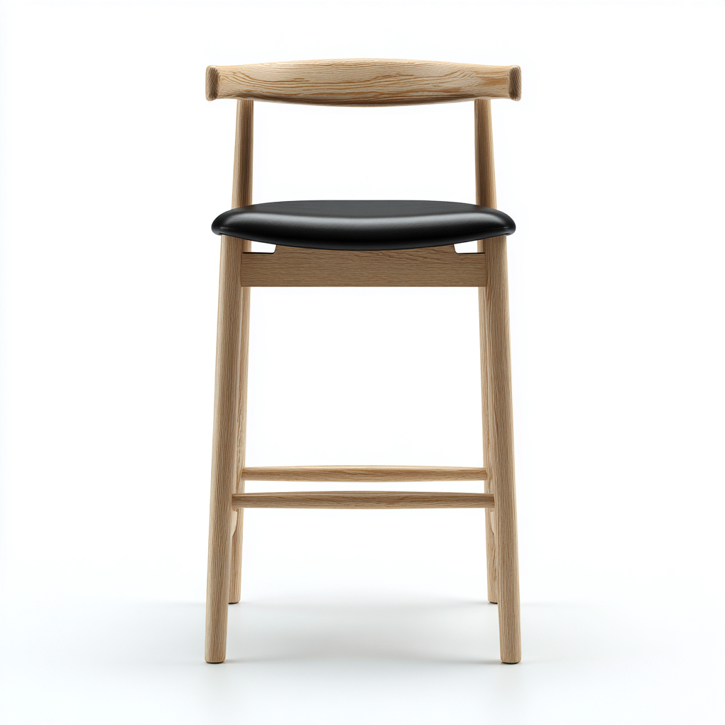 Sgabello da bar dal design moderno e minimale, realizzato con struttura in legno chiaro e seduta imbottita in colore nero, ideale per l’utilizzo in sala da pranzo.